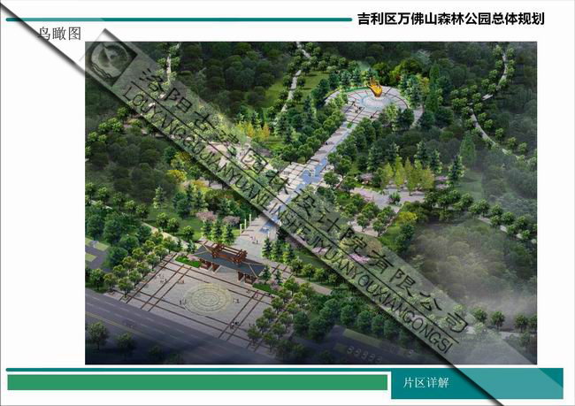 規(guī)劃區(qū)位于吉利區(qū)城區(qū)北部,規(guī)劃面積約12.3平方公里。交通便利,并緊鄰城區(qū),具備發(fā)展城市生態(tài)旅游的客觀基礎(chǔ),也是市民日常休閑的重要目的地。把萬佛山森林公園建成一處以自然山林野趣為特色,山水林地為內(nèi)容,可登山攬勝、入谷尋幽、湖畔垂釣,回歸山林,使其成為“市民好去處,農(nóng)民幸福村”。根據(jù)規(guī)劃區(qū)內(nèi)地形特點(diǎn)以及規(guī)劃構(gòu)思,規(guī)劃分為四個特色區(qū)域:綜合服務(wù)管理區(qū)、森林有氧運(yùn)動區(qū)、田園觀光體驗(yàn)區(qū)、佛教文化區(qū)。
