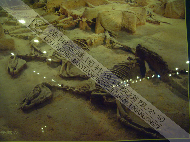整個博物館占地1700多平方米,為半地下式建筑,地面高度,3.6米,地下深度5.4米。分為兩個展區(qū):第一展區(qū)分四個板塊,一是洛陽地區(qū)5大都城與當代洛陽相互位置關(guān)系的圖版;二是東周王城概況;三是王陵的探索與發(fā)現(xiàn);四是珍貴的東周文物。第二展區(qū),東周時期大型車馬坑展區(qū)。這里展示的是2002-2003年,考古工作者發(fā)掘清理的17座車馬坑(馬坑)中的2座。其中北邊一座,規(guī)模系國內(nèi)少見,其車馬呈縱向兩列的排放,宛如出行陣列的場面,更顯精彩。最令世人矚目的是唯一一輛"駕六"的發(fā)現(xiàn),以直觀清晰的形式印證了古文獻中"天子駕六"的記述,這也是世界上唯一一處原址展示的"天子駕六"。
